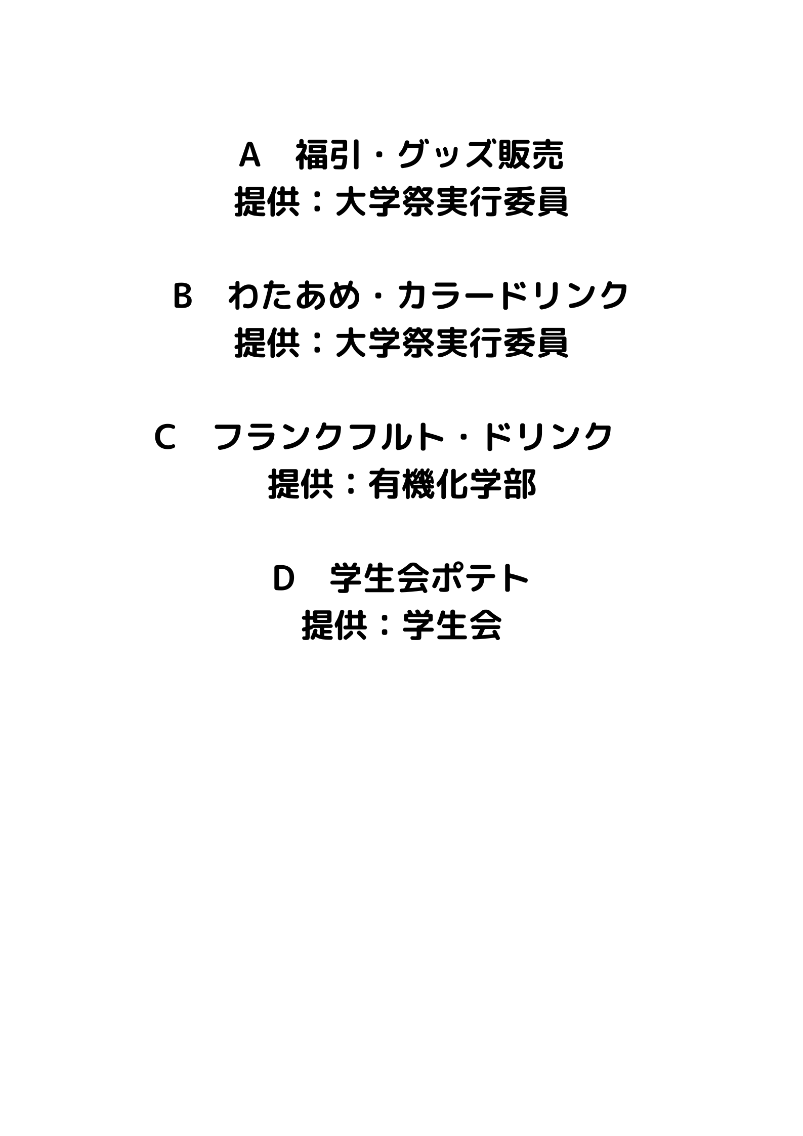 外部からお呼びした屋台や実行委員会や部活動などの学生団体による模擬店、アーティスト「ゴホウビ」による野外ステージライブなどが行われ、2日間にわたる大学祭は大いに盛り上がりました。