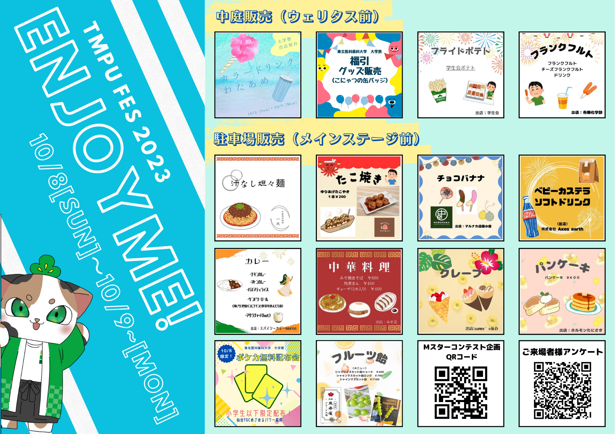 令和5年 東北医科薬科大学 大学祭「Enjoyme!」は10月8日~10月9日の2日間に開催されました。ご来場いただいた皆様、ご協賛された企業の皆様方におかれましては大変感謝申し上げます。